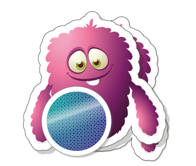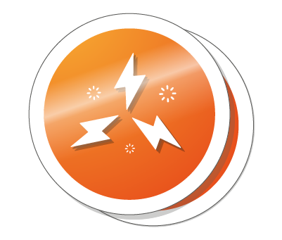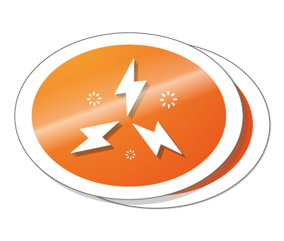 Einseitige Ausführung in 4 Farben (CMYK = cyaan, magenta, gelb und schwarz). Bei diesem Druckverfahren wird extra weiße Deckkraft hinzugefügt, sodass vor allem bei transparenten Aufklebern die Farben gestochen scharf und grell sind.