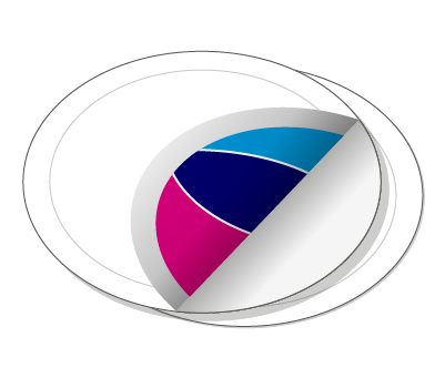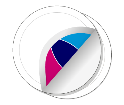Auf transparentem Material sind CMYK-Tinten transluzent : Farben wirken halbtransparent und Weiß bleibt unsichtbar